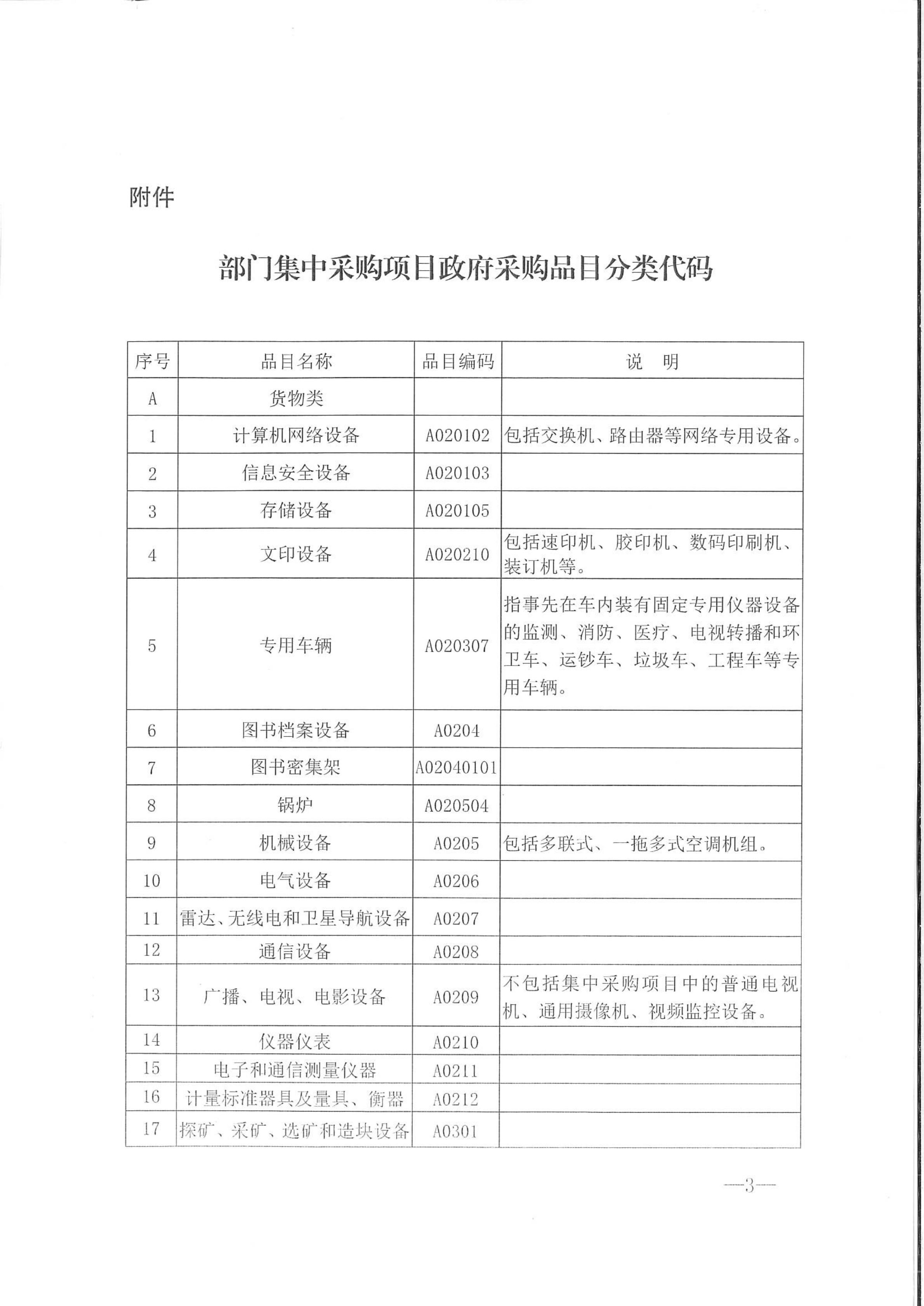 附件:部门集中采购项目政府采购品目分类代码