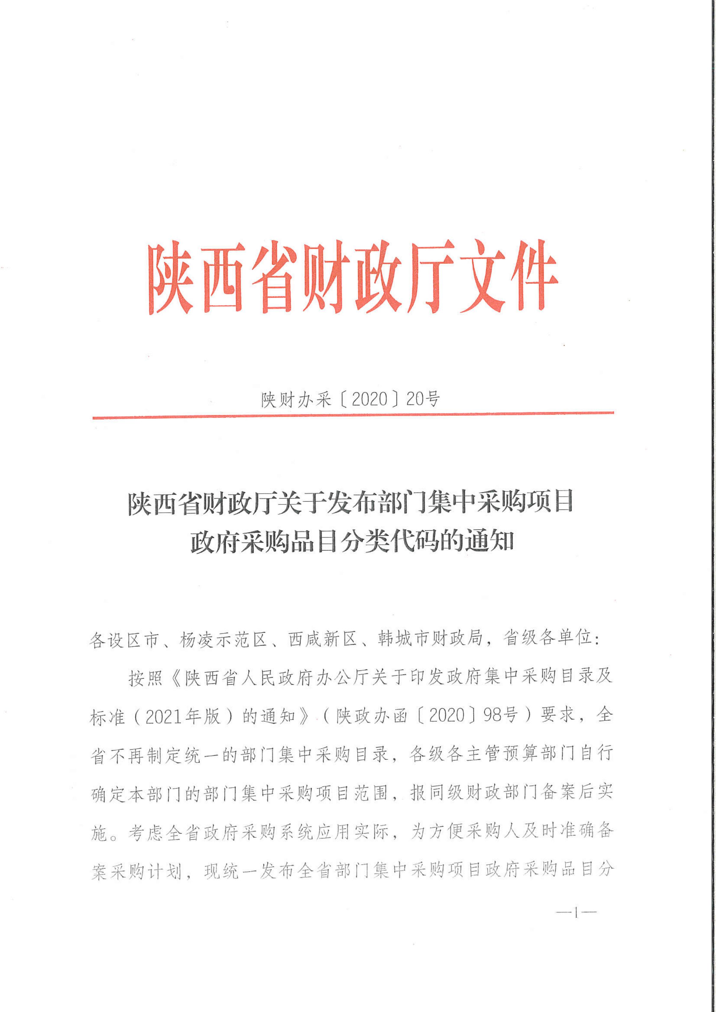 陕财办采〔2020〕20号