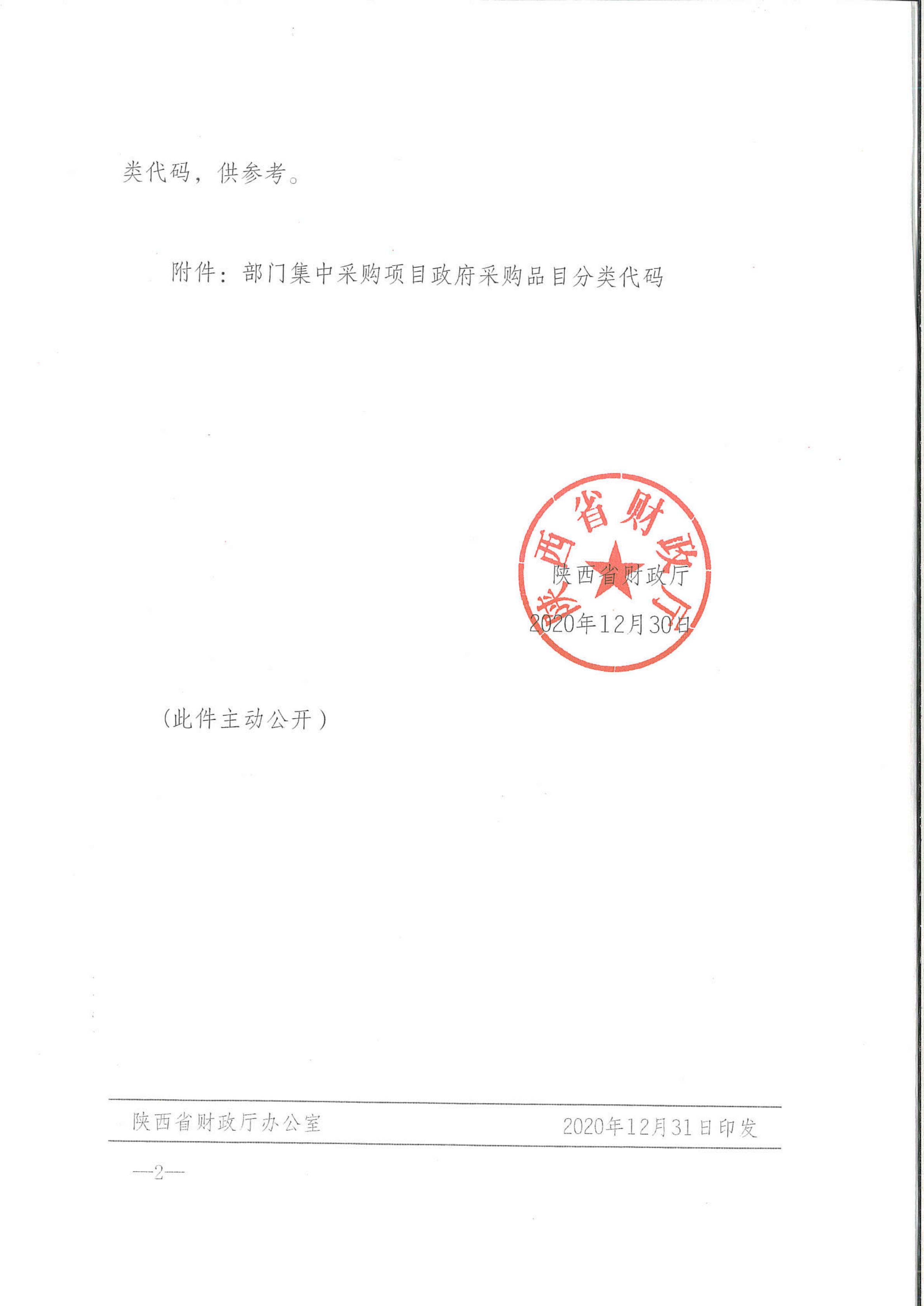 陕西省财政厅关于发布部门集中采购项目政府采购品目分类代码的通知
